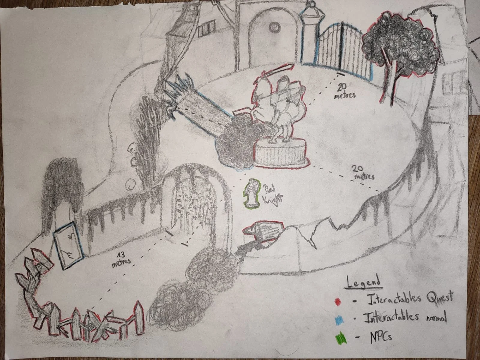 Like our reference game Disco Elysium, which began as a pen-and-paper campaign, I dedicated significant time in the concepting stage to experimenting with various quest ideas and game mechanics through paper prototyping. I wrote branching dialogue in Twine, allowing for rapid iteration, while our programmers developed tools to implement the dialogue in-game.
