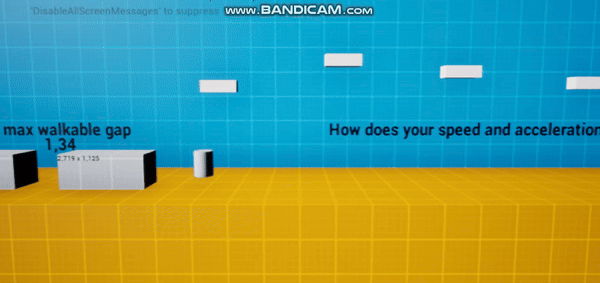 Above, you can see some of the variables tested in the gym level. I gathered playtest data on people´s perception of the character and whether these metrics felt right.