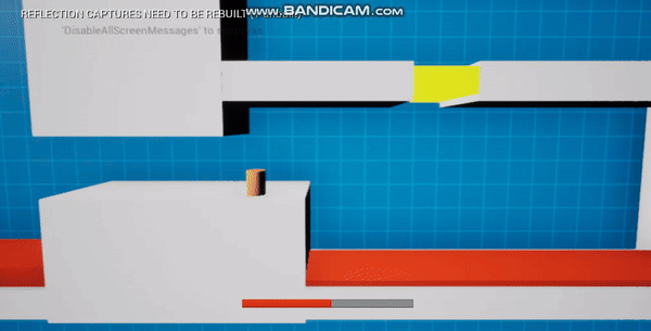 Section 2: This section combines destructible walls with moving platforms; The player must use their blast to avoid falling off the platform, whilst still making sure not to overshoot.