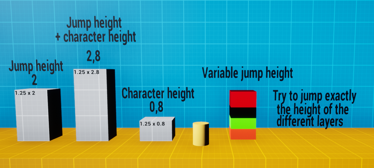 To ensure that the level would be interesting and fun to play, I spent a lot of time exploring challenges through sketching. I implemented these challenges into my gym level and tested them with players to ensure that their difficulty was just right.