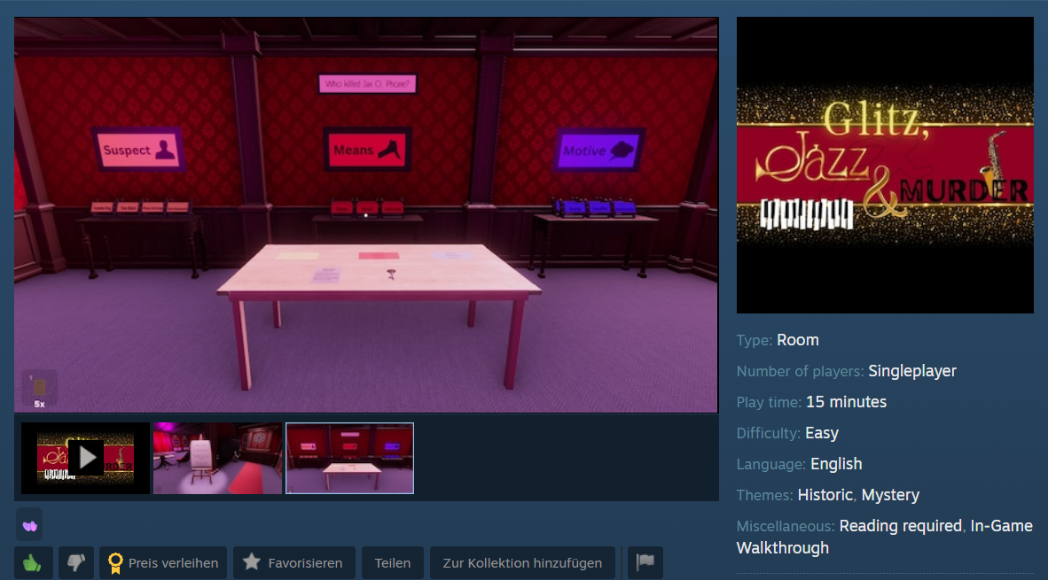 Screenshot of the room´s Steam Page, showing pictures and its tags.